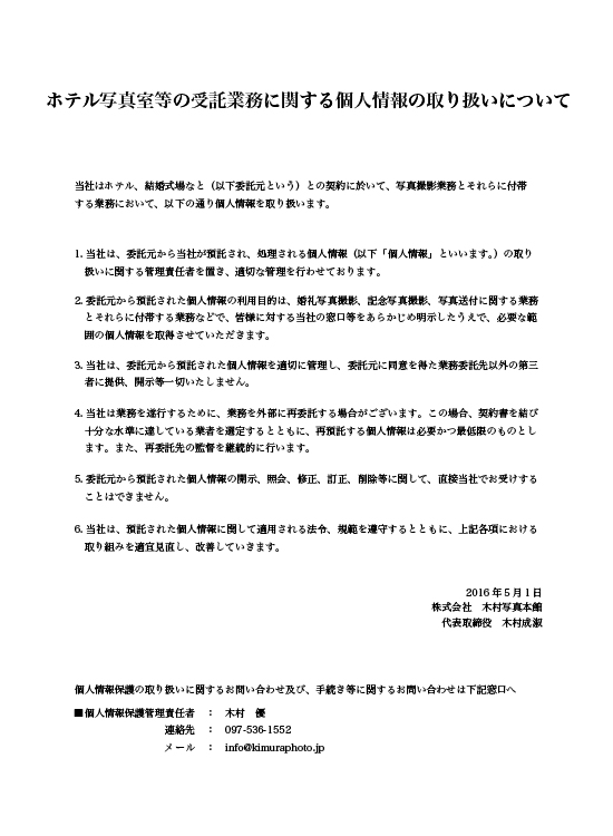 ホテル写真室等の受託業務に関する個人情報の取り扱いについて