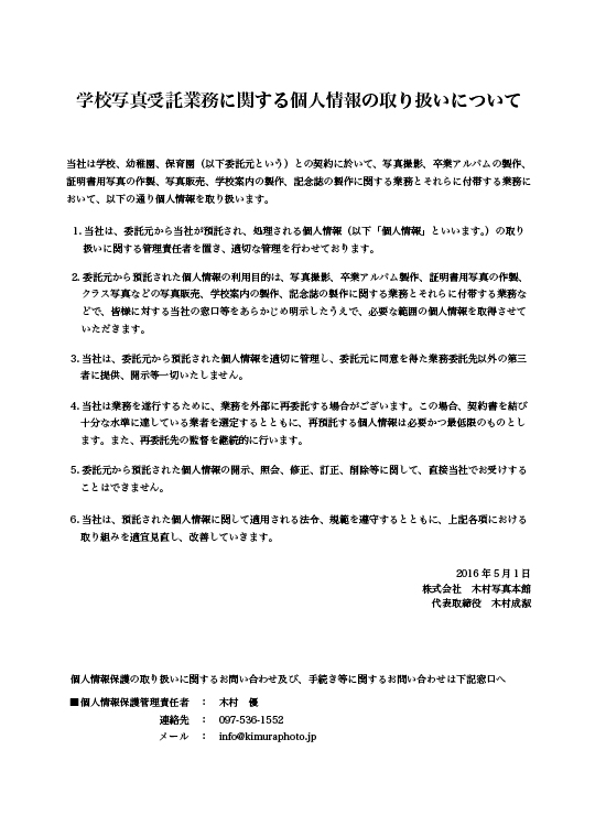 学校写真受託業務に関する個人情報の取り扱いについて